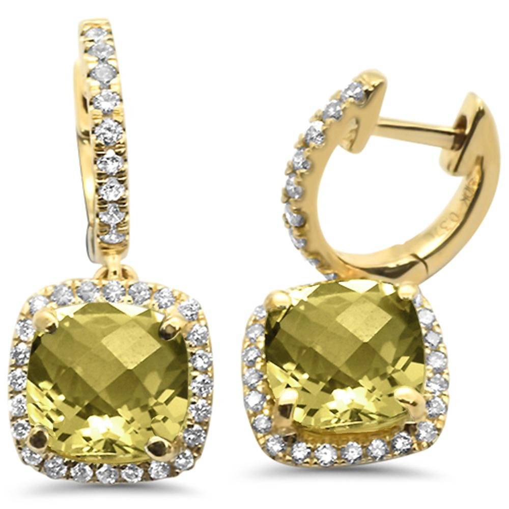 GEMSTONE CLOSEOUT ! 3.1ct 10k Yellow Gold Cushion Olive & Diamond Earrings