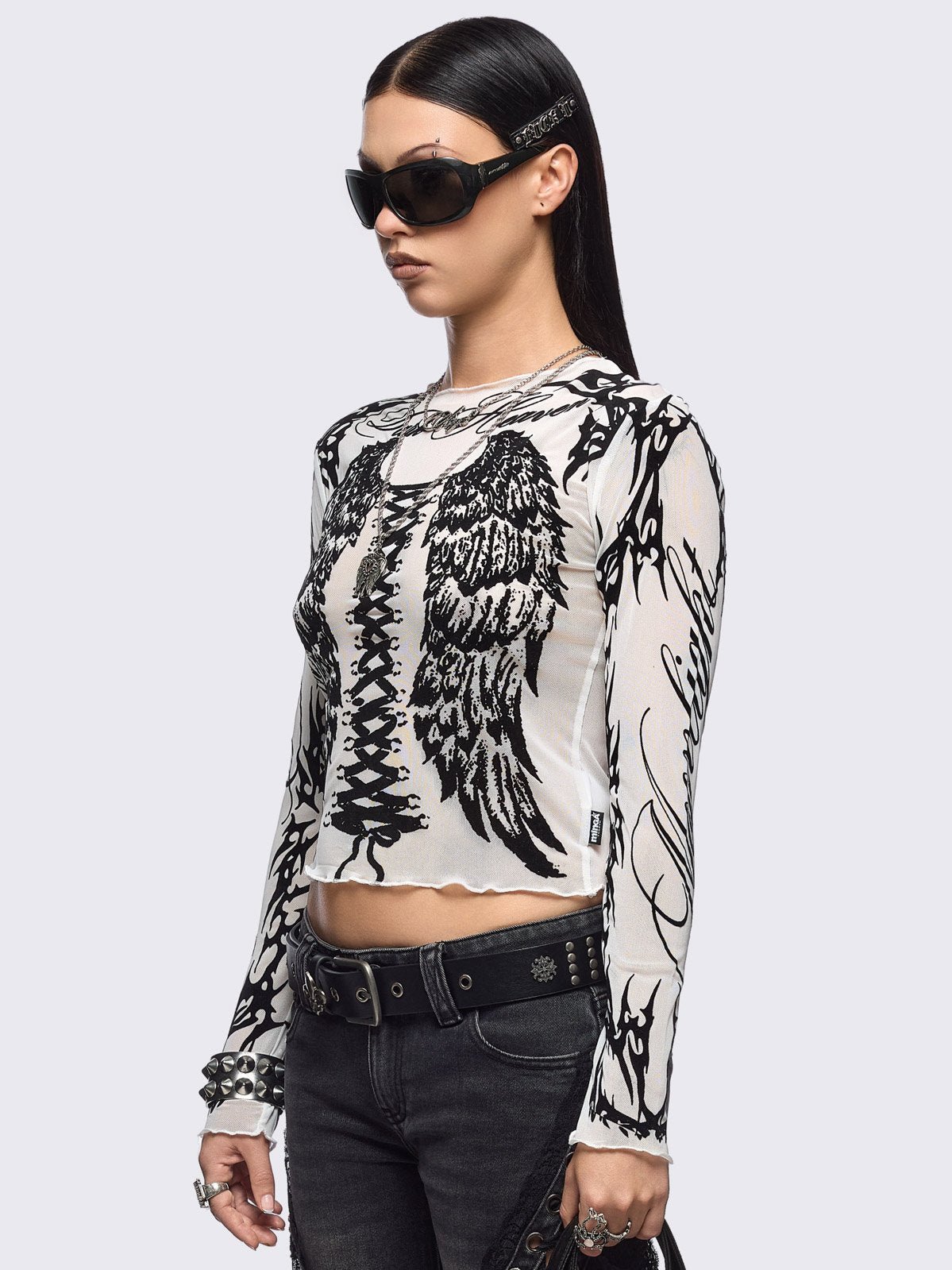 - Black winged corset and sigilism graphic print